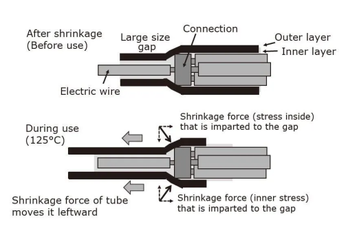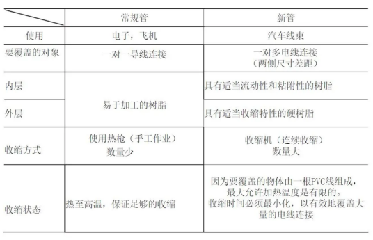 通常,传统的双壁管用于维护1对1的电线衔接。可以毫无困难地用热空气或其他加热设备(250-350°C)将管道缩短。另一方面,为了维护轿车线束的衔接,需求满意以下四个特定条件: