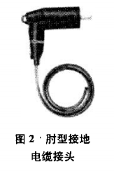 终端头、双通套管、带电指示器和不锈钢箱组成,采用结构紧凑的全封闭设计,电缆完全处于全密封状态,须先拆除电缆封帽、堵盖露出金属双头螺杆才能验电。以往拆电缆头前都未验电,而仅通过观察带电显示器来判断电缆是否带电(规程L1中未明文规定),若带电显示器发生故障而又无其它安全保护措施,则会危及检修人员的安全。虽然国内多个厂家针对电缆分支箱、箱式变及环网开关柜制作的肘型接地电缆接头(见图2)可用来完成最后的接地工作,但无法做到之前电缆头拆除工作的安全保护,也就无法完成完整的技术措施。而本文研制的电缆分支箱验电接地工具(见图3)就圆满解决了该问题,可完成电缆分支箱停电工作时必须实施的一系列安全技术措施,保障检修人员的人身安全。